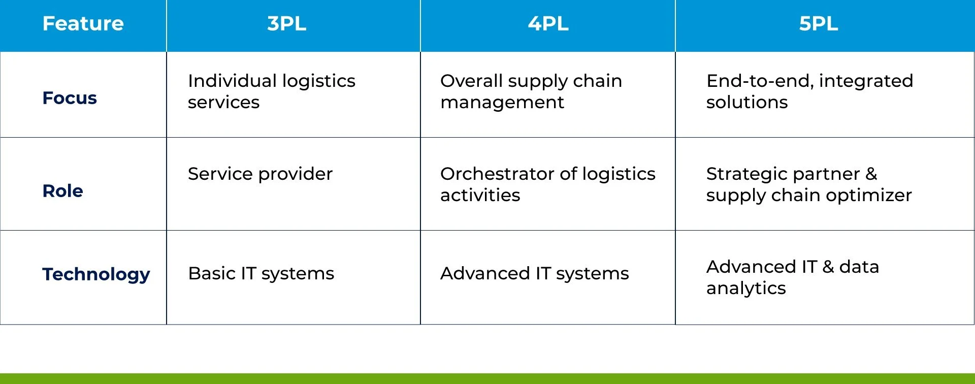 When it comes to running a successful business, efficient logistics are key to making sure products get to customers on time, every time. As supply chains become more complex and global, businesses are turning to specialized logistics providers for help. This has led to the rise of different types of logistics solutions, each with its unique strengths and services. You’ve probably heard the terms 3PL, 4PL, and 5PL thrown around, but what do they actually mean? Let’s break it down and clarify the differences so you can make informed decisions for your business.